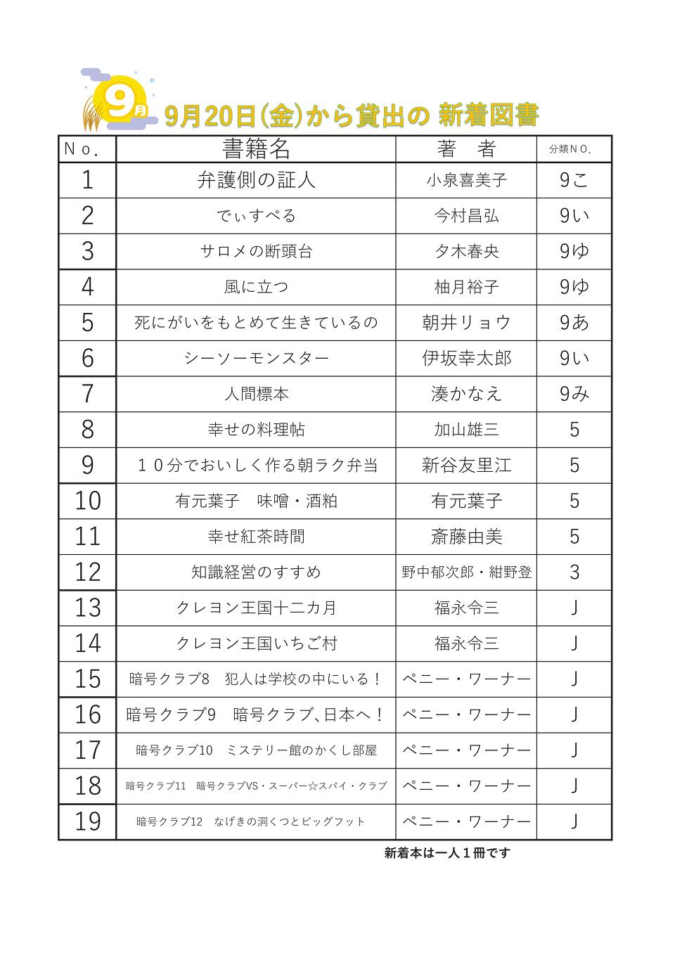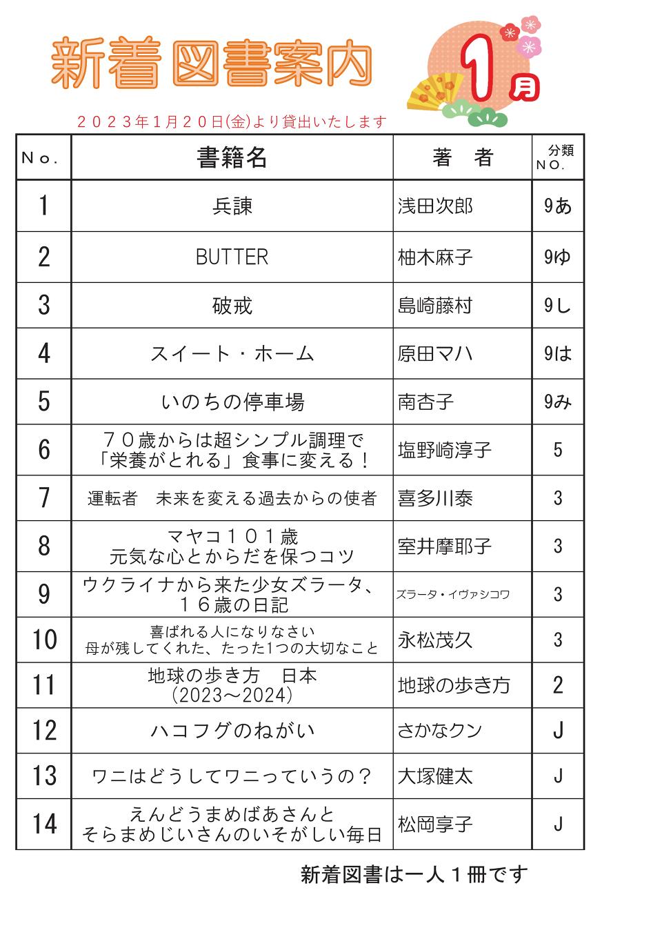 本は一回3冊まで、2週間お借りいただけます。 新着本の貸出しは予約本も含め、1人1冊までとさせていただきます。