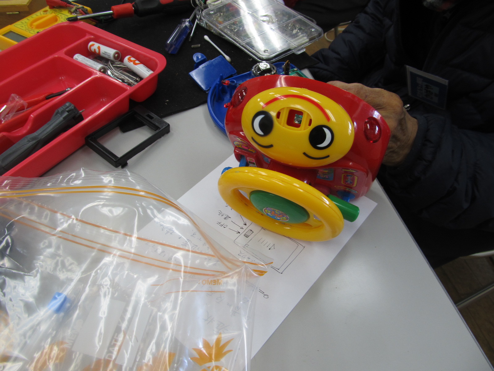 ボランティアの皆さんが、朝から壊れたおもちゃを修理してくれました。