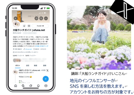 地元の人気インフルエンサー「大船ランチガイド」のけいこさんから、X(エックス・もとツイッター)の楽しみ方を教えてもらいます。