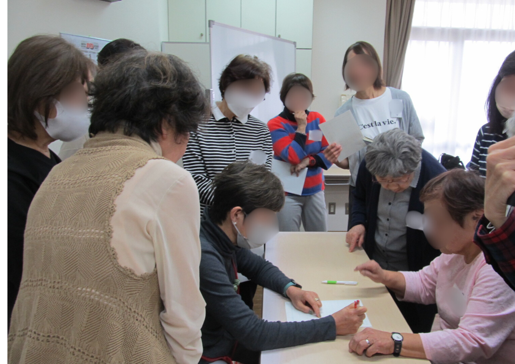 「大人の美文字レッスン」がスタートしました。 豊田地区センターでは初めての講座で、10月と11月の2回にわたって開催されます。第1回では、ボールペンや筆ペンなど、お好きな筆記具を使ってご自身の名前や住所を練習しました。 先生からのアドバイスを受けながら、他の方への指導の様子にも熱心に目を向ける姿も!次回は、年賀状シーズンに向けて、はがきへの美しい文字の書き方を学ぶ予定です。